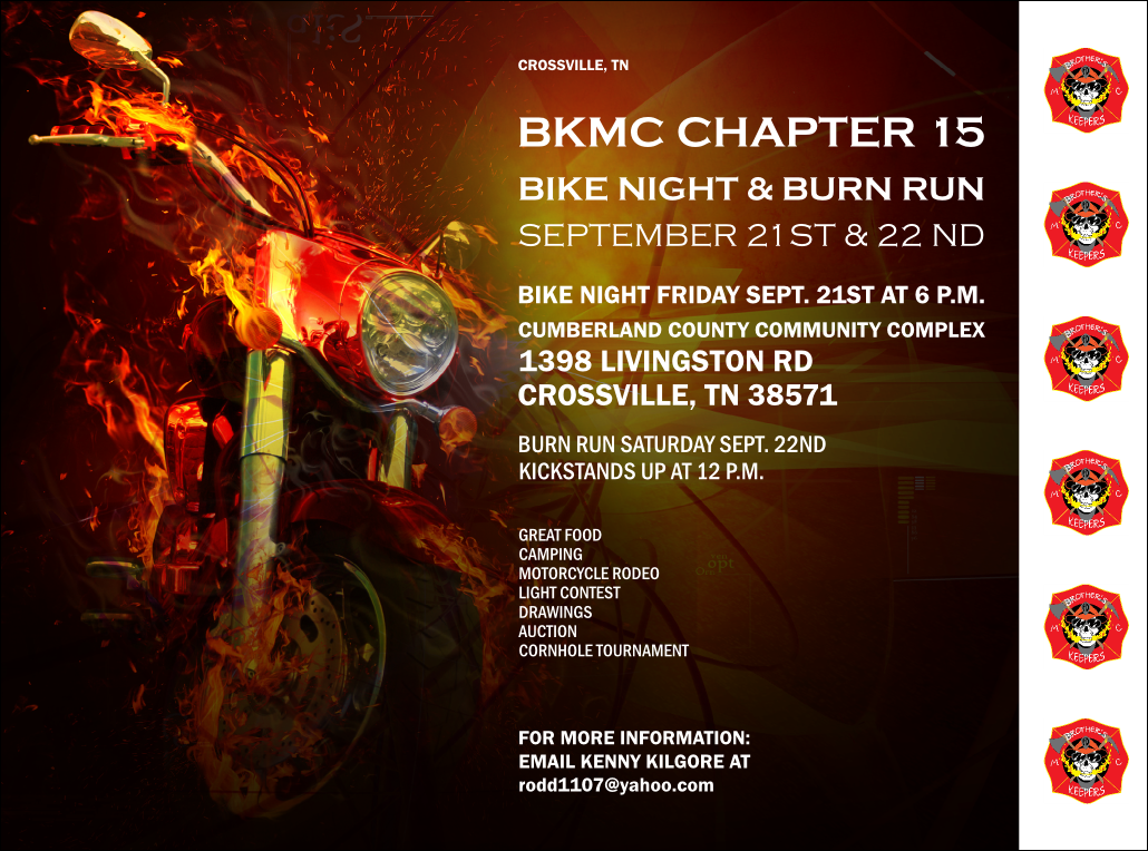 Burn Run starts Saturday Sept. 22nd Kickstands up 12:00 pm